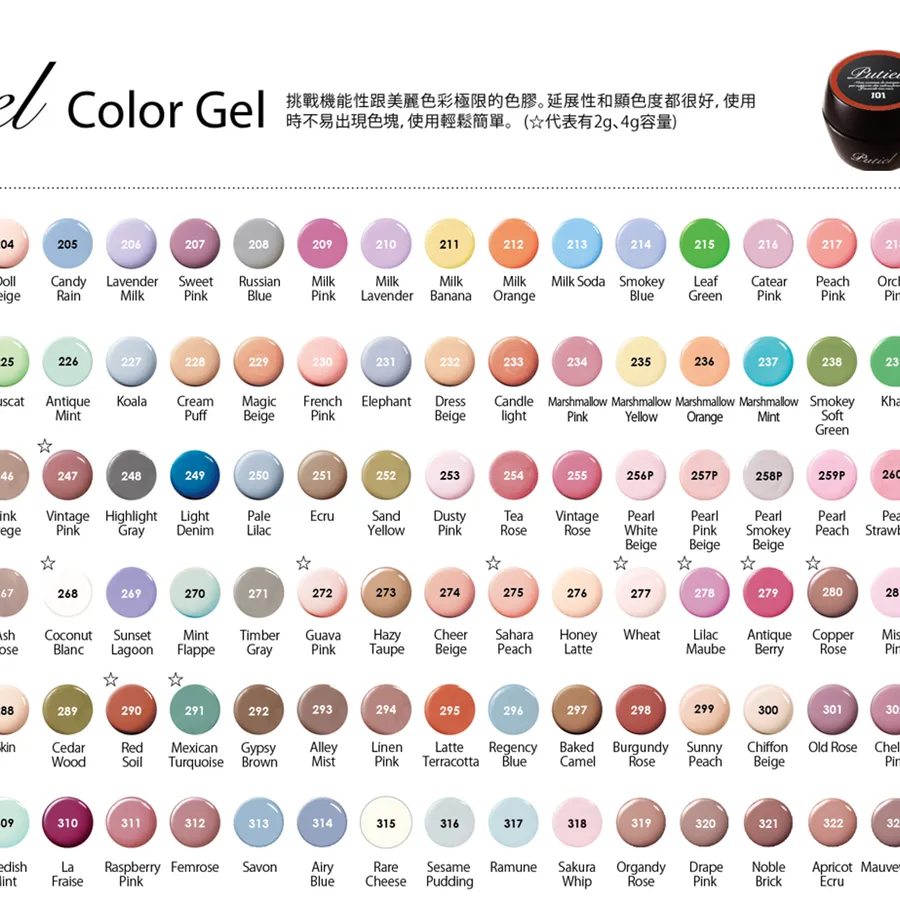 Putiel淺色色膠系列(201~260)
